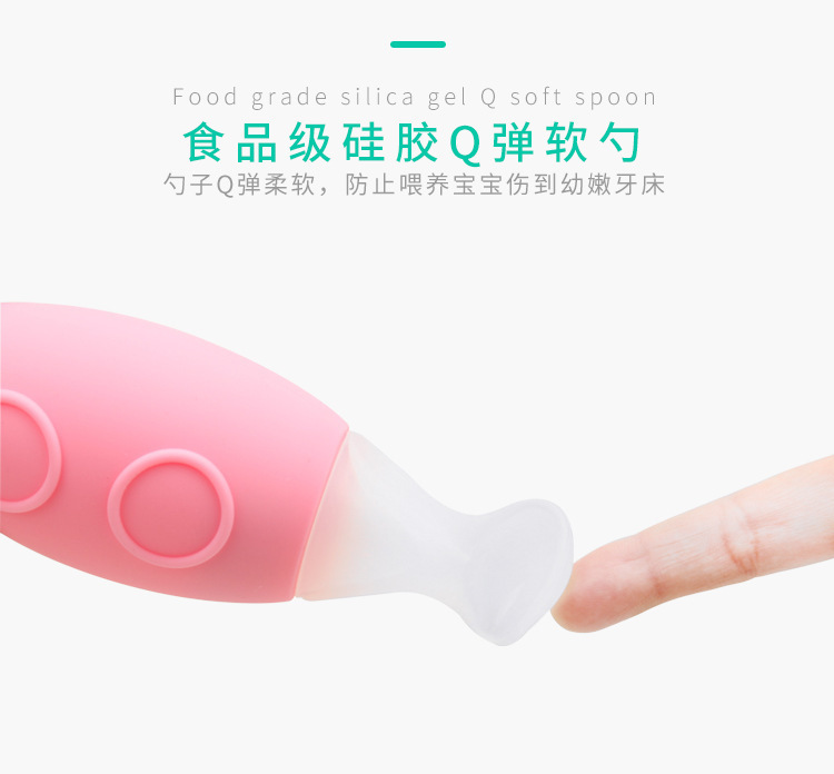 1、碗勺一體,輕松喂養,擠壓式設計,解放雙手,解決喂養煩惱